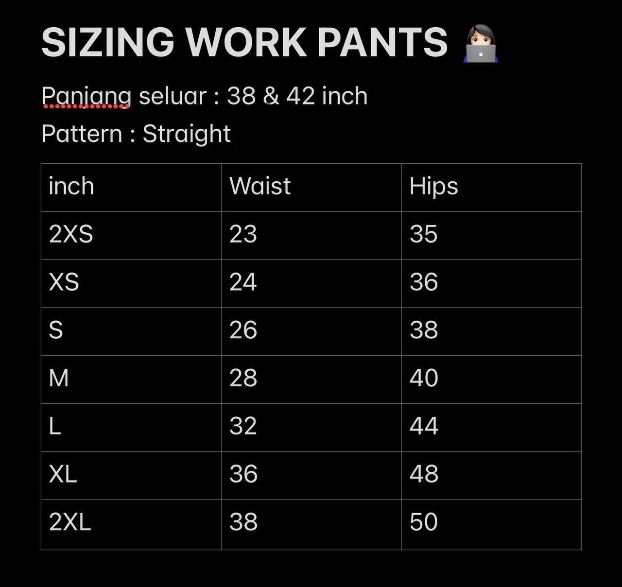 WORK PANTS 42 STRAIGHT CUT